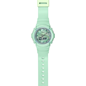 The BGA-280 Series layers multiple parts to create innovative and colorful designs. The round cases of these models and the cute impression of their hefty forms are complemented by the sporty touch of the metallic hour markers. The pastel colors of these models are all inspired by LA street designs. Case colors are offset by mint green, ivory and semitransparent blue and semi-transparent purple base colors to create refreshingly attractive designs.